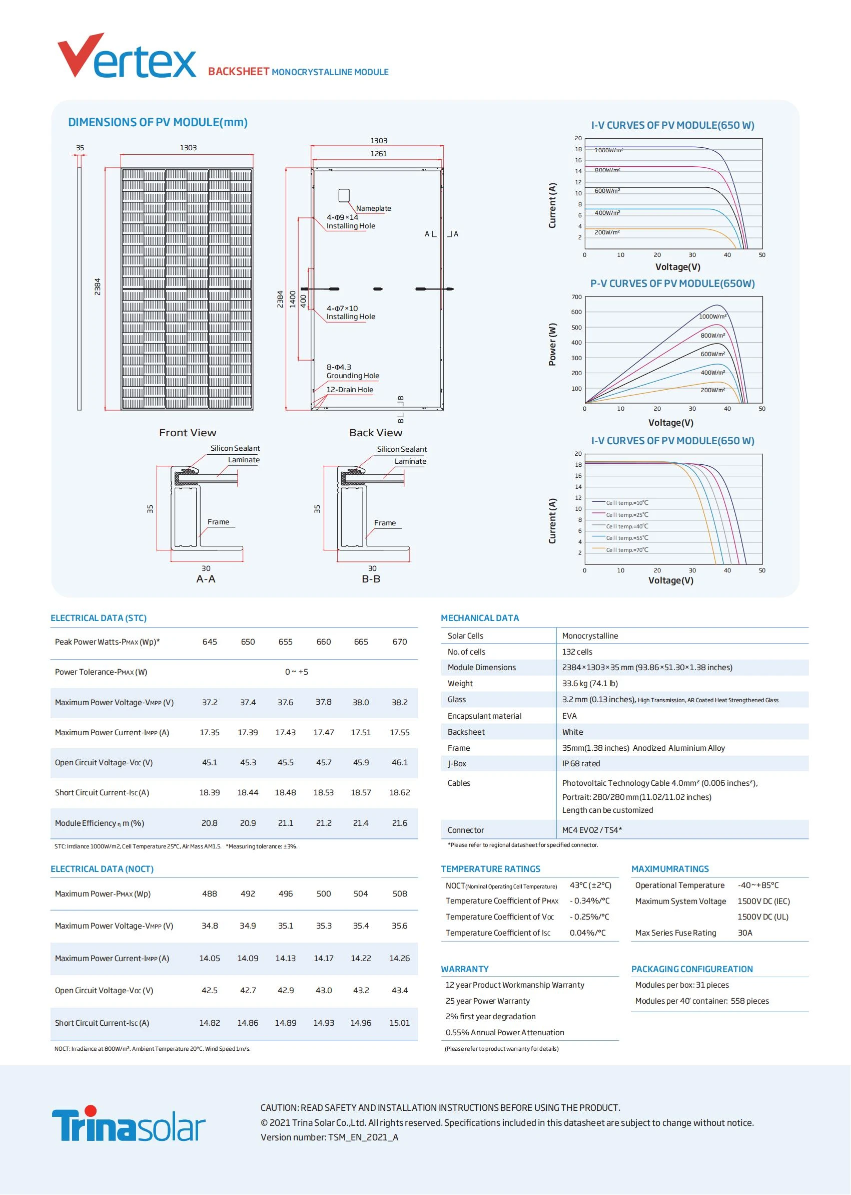 N-type i-TOPCon BACKSHEET MONOCRYSTALLINE MODULE TSM-DE21 645-670W